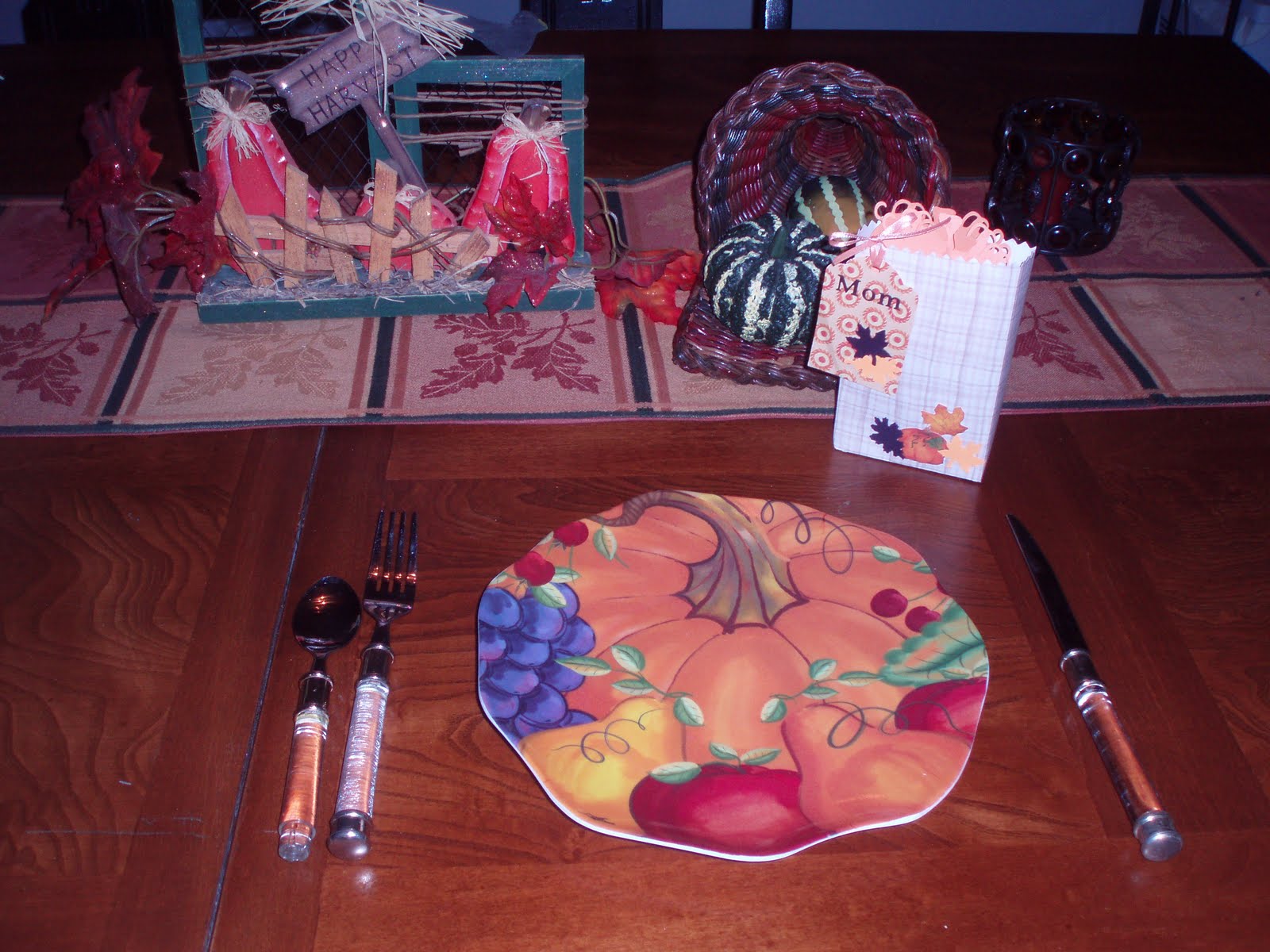 It\’s time to start thinking of our holiday celebrations with Thanksgiving right around the corner and Christmas soon to follow. Did you take the time to make those Harvest Treat bags for Halloween? Well, here is another opportunity for you to make them. You can use them as part of your place setting for your Thanksgiving dinner. Fill each bag with dinner mints and then make shapes of leaves, pumpkins or harvest colored tags with your Creative Memories Shape Makers, put words like \”family\”, \”health\”, \”salvation\”, \”forgiveness\”… on the shapes. After you fill each bag, put the name of the person on the place card (tag) attached to the front of the bag. Before dinner each person draws from their bag, reads the word and shares why they are thankful as it relates to this word. This makes a for a great time of sharing before Thanksgiving dinner.