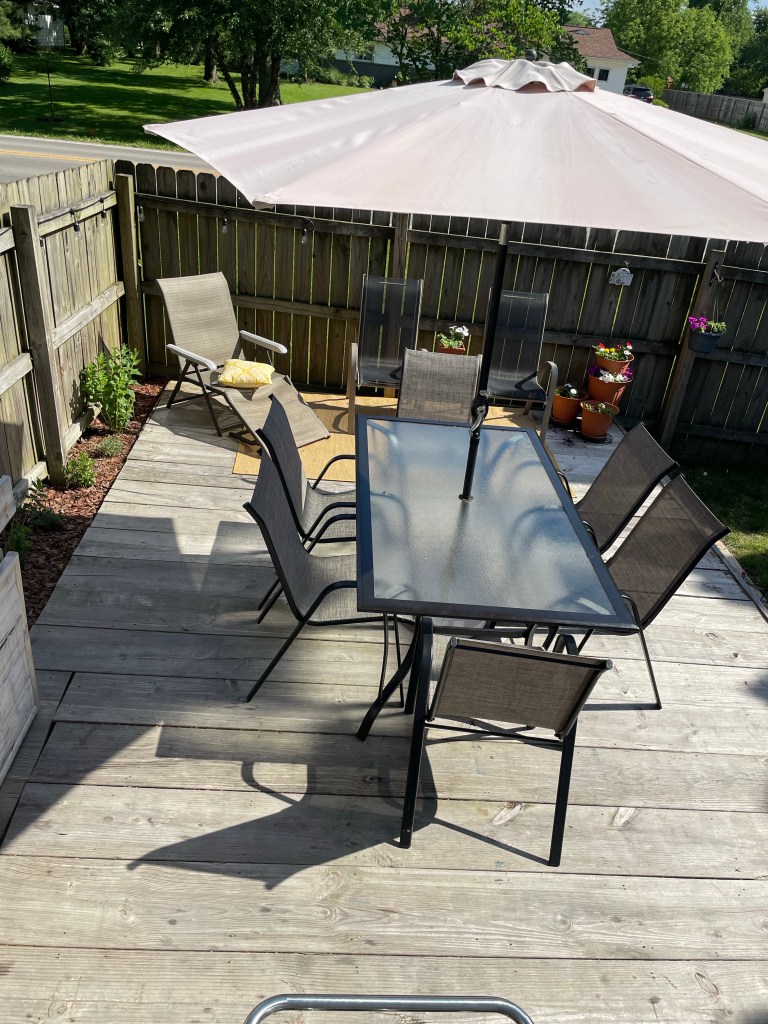 Our deck has plenty of seating options.