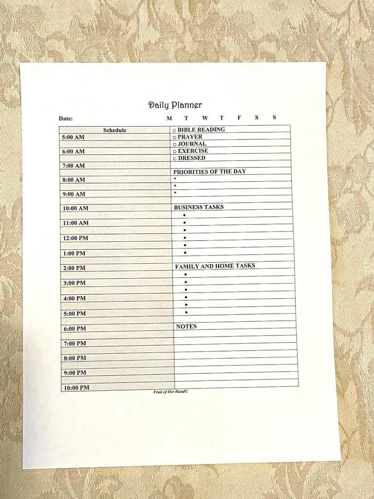 And last, but not least on my list of life hacks is to use a daily planner. I don’t know about you, but I operate so much better when I know what to expect, when. As I think of things or as I am made aware of things i.e. events, appointments, activities, I write them down on my to do list. Then each evening before bed, I update my daily planner by adding things that need to be done. My daily planner has a schedule with hours listed from 5:00 a.m. until 10:00 p.m. for me to simply fill in what needs to be done at a certain time. It also has all the areas that are most important to me already noted…my daily self-care, priorities of the day, business tasks and family and home tasks. It has a section for notes as well. I print my double-sided pages and maintain what I need for about 30 days in my binder so that I can fill it it as I go. My daily planner really does help to keep me organized and on top of the important things in my life.