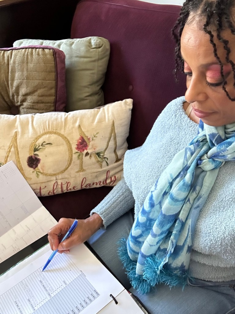 To organize my time and my tasks I use a daily planner. This planner is great for my lifestyle because it gives me guidance for scheduling things intentionally as a mom and entrepreneur to get and maintain a rhythm for my day. There is accountability for daily self care which is outlined as bible reading, prayer, journal, exercise and getting dressed on purpose. Every day there are things that must get done, but there must also be room for the unexpected. I list just three priorities each day. When I have accomplished those I consider it a very productive day! There is also a place to list business tasks and family and home tasks separately. Of course there is a place to list scheduled appointments, meetings etc. at a specific time as well. My daily planner is the tool that allows me to organize and plan how to spend my time throughout the day. Each evening I review my daily planner and update, check off and edit if necessary as I consider the next day.